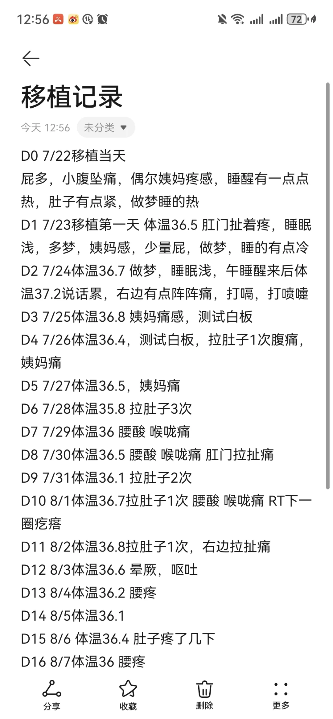 D1 7/23移植第一天 体温36.5 肛门扯着疼,睡眠浅,多梦,姨妈感,少量屁,做梦,睡的有点冷