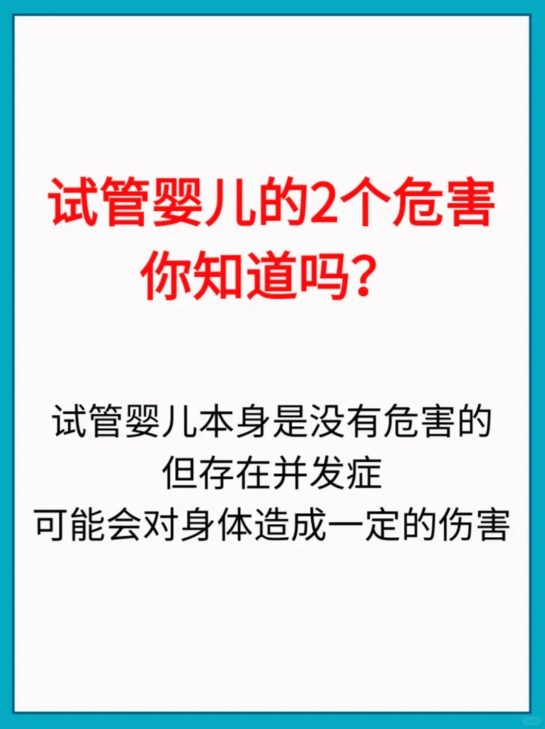 试管婴儿本身是没有危害的,但存在并发症,可能会对身体造成一定的伤害